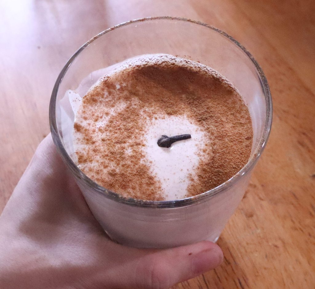 - Add to the blender: In order, add all the ingredients: milk, cinnamon, vanilla powder, clove, banana.